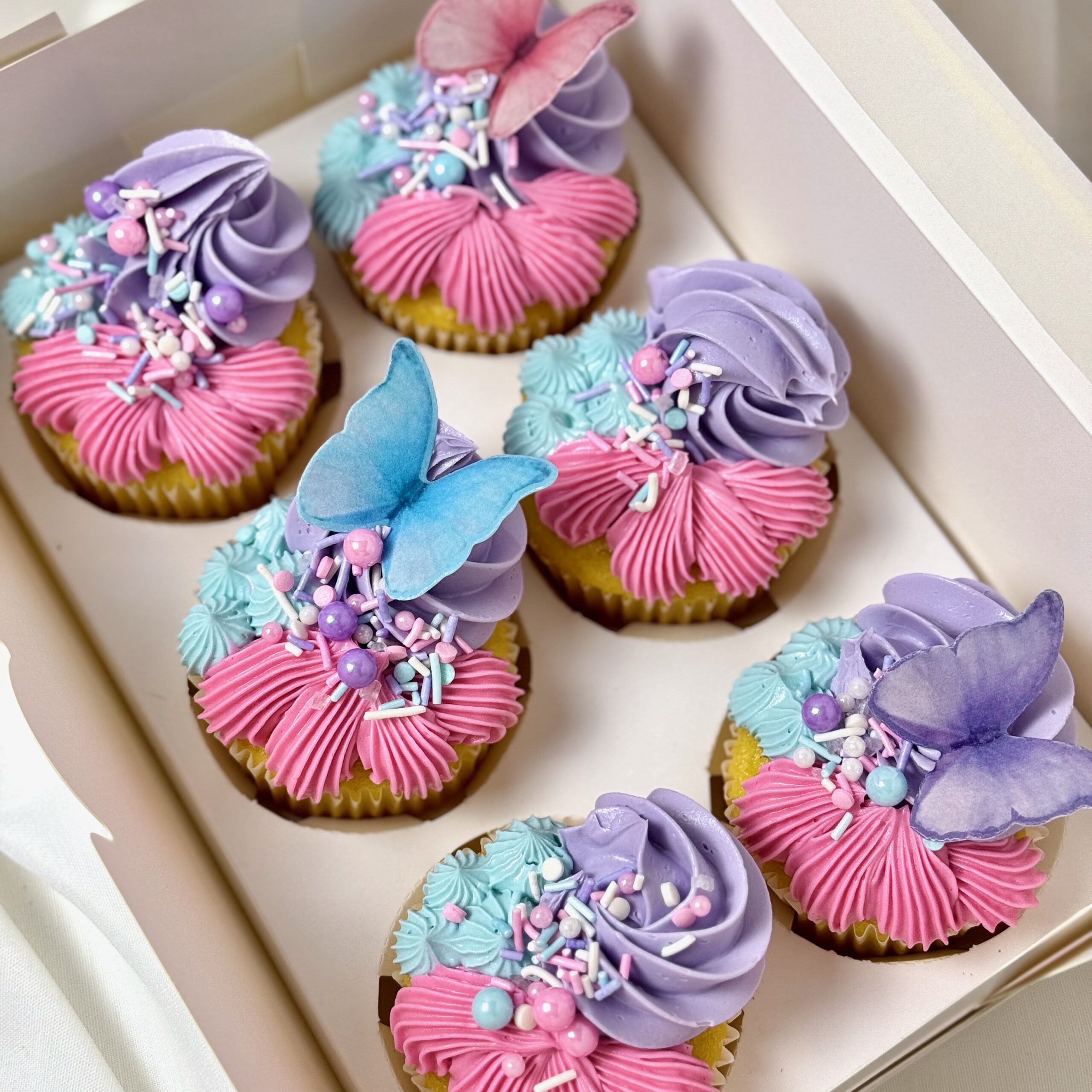 Tiny cakes, big charm! Our cupcakes are sweet little showstoppers—each one hand-piped with vintage-inspired buttercream swirls, dainty details, and the occasional flutter of a sugar butterfly (add-on). Available in a variety of flavors and designs, they’re perfect for birthdays, tea parties, or just because every day deserves a little frosting. Each cupcake is made to order with love, so they’re as fresh and special as the moment you pick them up.